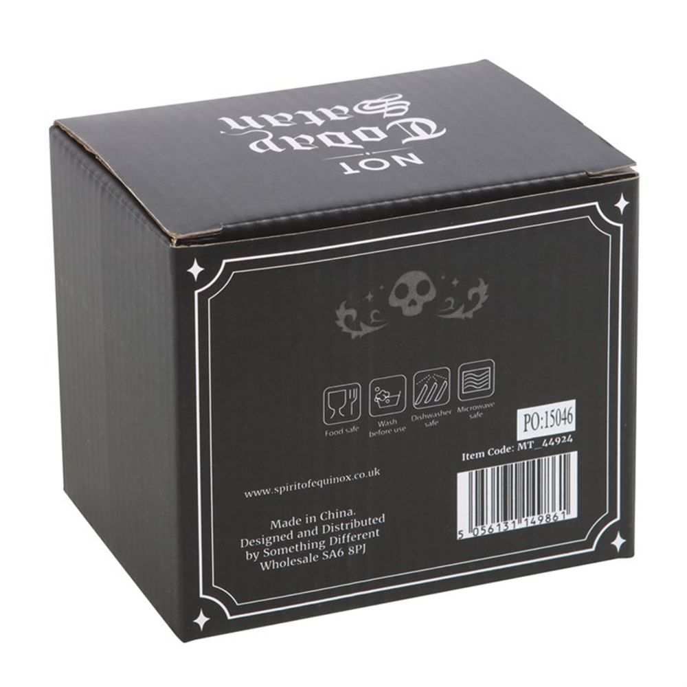 Keep your demons at bay with this funny ceramic mug. Features 'Not Today Satan' text written in gothic lettering for warding off unwanted hooved guests.300ml capcity. Microwave safe.