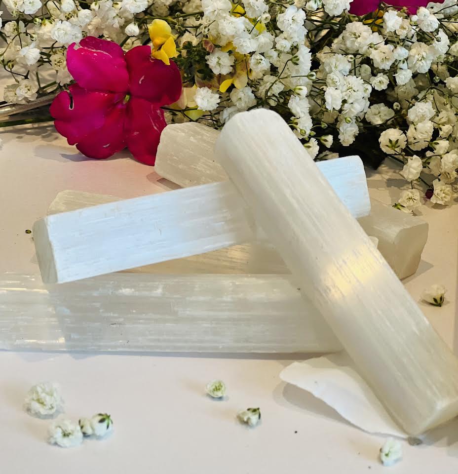 Selenite is known as the "Stone of Clarity and Higher Consciousness," and our carefully selected Selenite sticks embody its translucent white appearance and delicate striations. The pristine nature of Selenite reflects its powerful properties of cleansing, purifying, and amplifying energy.