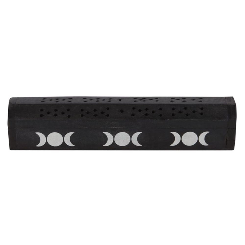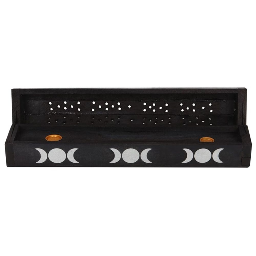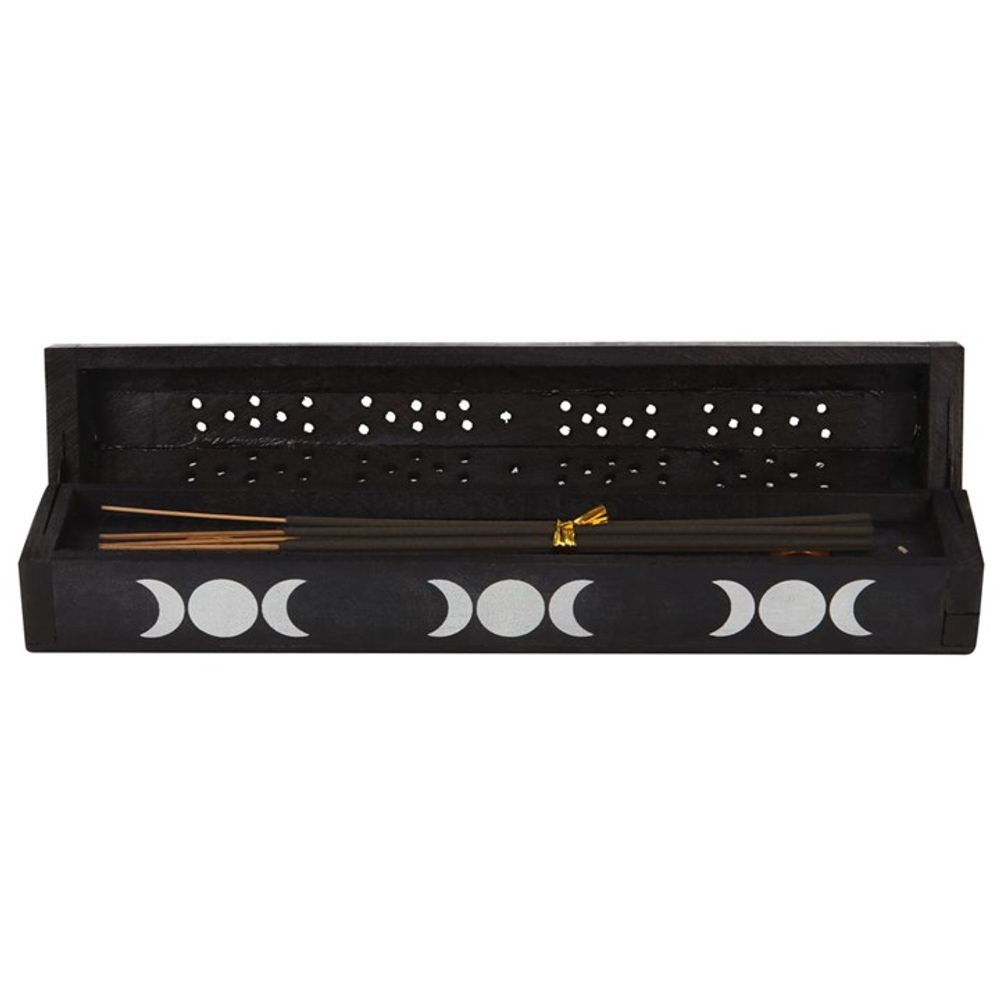 This incense gift set includes 10 sage fragranced incense sticks in a mango wood box. Printed with white triple moons, this box doubles as both an incense holder and storage Product Dimensions: H6.5cm x W30.5cm x D6cm Packaged Dimensions: H6.5cm x W30.5cm x D6cm